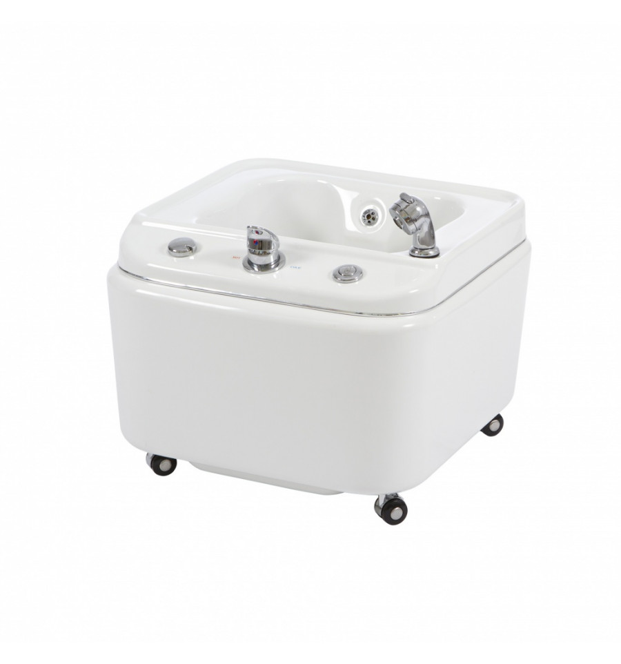 Baignoire de pieds à 4 roulettes qui facilitent son déplacement.